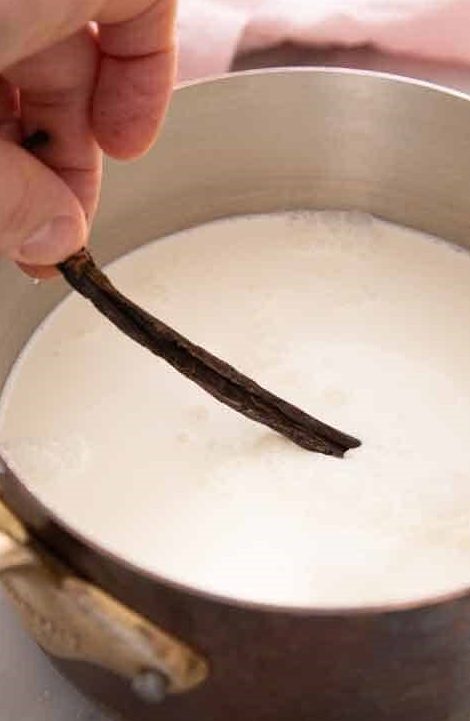 3. Put the vanilla bean seed into the heavy cream (including the pod). Bring it to simmer over medium heat. Remove from the heat and let it cool for about 15 minutes..