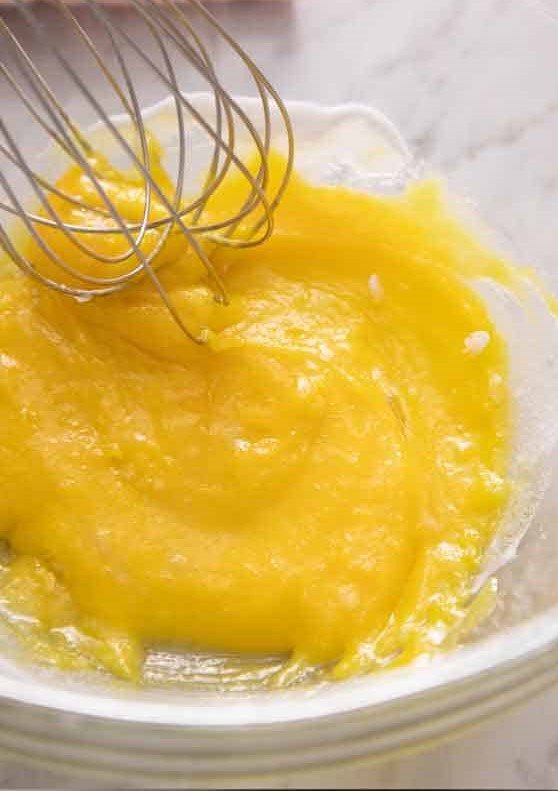 7. Slowly pour the cream mixture into the egg. Don’t be too fast, otherwise you’ll ended up making a scramble egg. While pouring it, whisk it too.